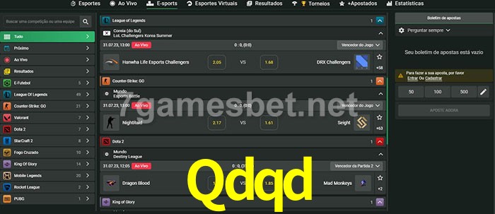 O Qdqd oferece uma grande seleção de opções de apostas em e-sports com probabilidades competitivas